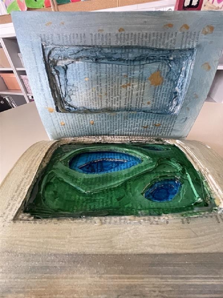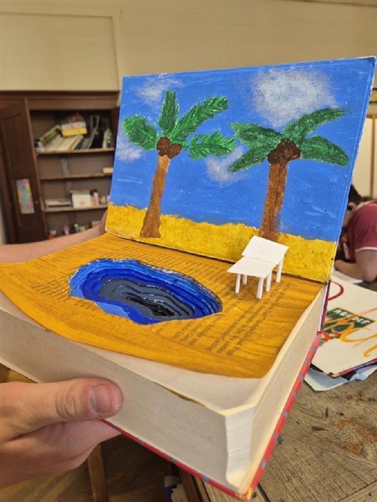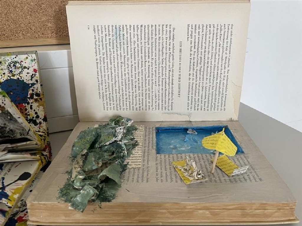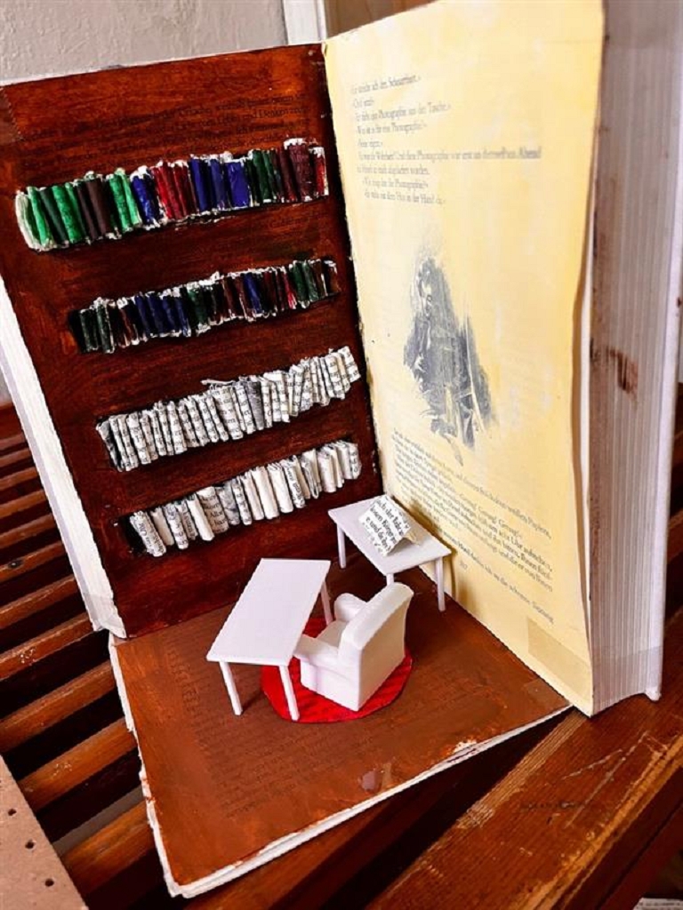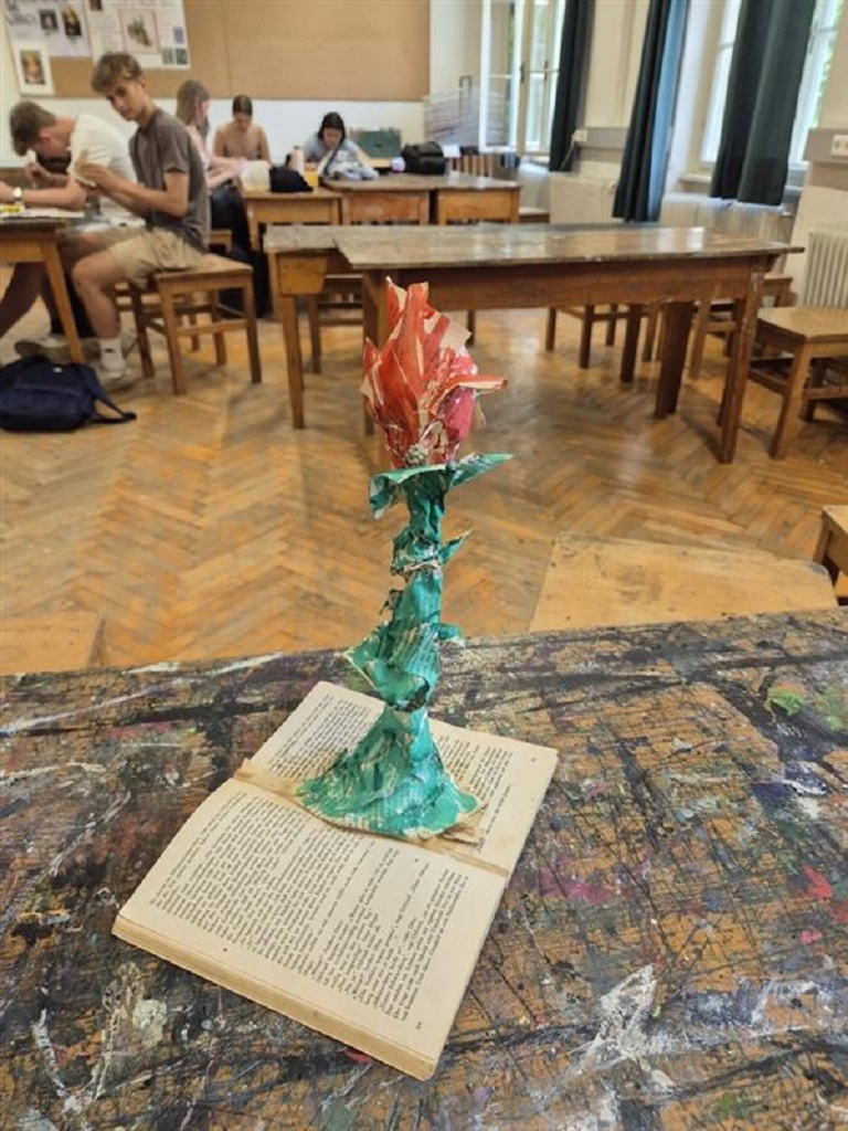 Die Schüler:innen der 7. Klassen des Stiftsgymnasiums verwandelten alte Bücher in Kunstwerke.