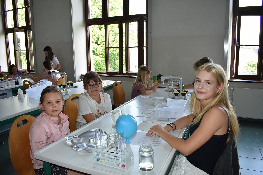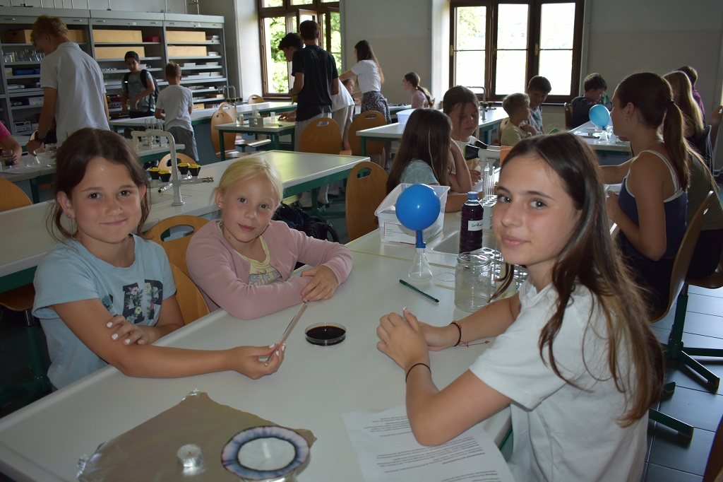 Nach einer herzlichen Begrüßung durch Frau Direktorin Mag. Ines Leschirnig-Reichel wurden die Volksschulkinder in Kleingruppen aufgeteilt und hatten die Gelegenheit, sechs naturwissenschaftliche Stationen im Gymnasium zu durchlaufen.