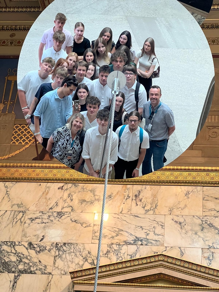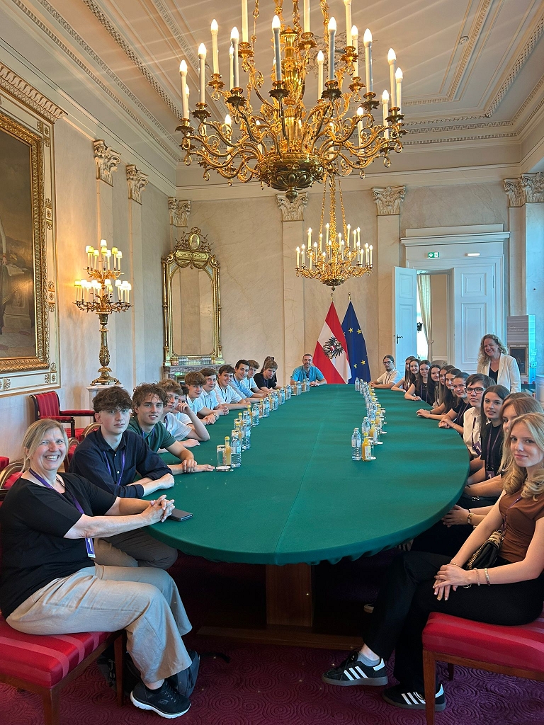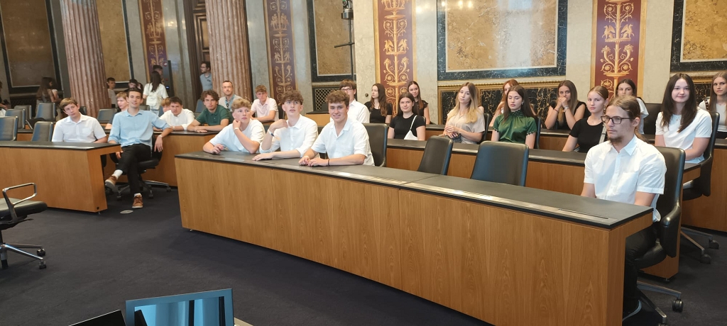 Den Abschluss des Wienaufenthaltes bildete ein EU-Schwerpunkt im "Erlebnis Europa". Hier schlüpften die Schülerinnen und Schüler in die Rolle von EU-Abgeordneten. Sie bildeten fiktive Fraktionen, verhandelten untereinander und erkundeten verschiedene Perspektiven, um einen gemeinsamen Konsens zu finden – ein praxisnahes Erlebnis, das die Abläufe der Gesetzgebung in der EU anschaulich verdeutlichte.