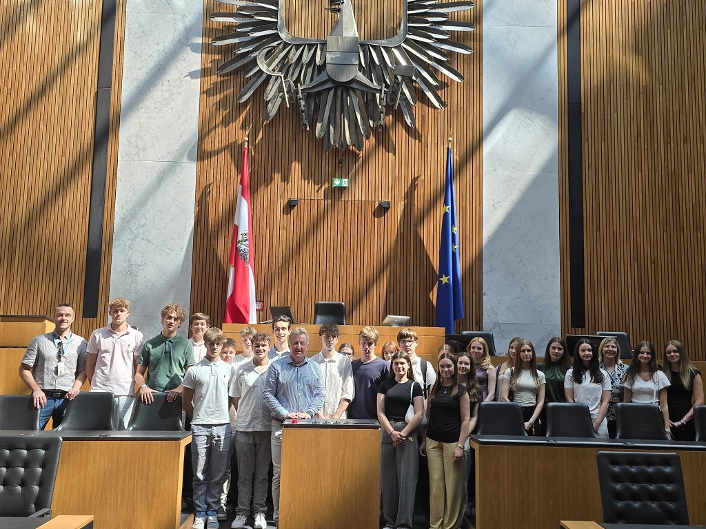 Den Auftakt bildete eine Führung durch das Parlament. Dabei erhielten die Schülerinnen und Schüler einen fundierten Einblick in die österreichische Gesetzgebung. Im Anschluss daran hatte die 7b-Klasse die einmalige Gelegenheit, ihre Fragen zu den parlamentarischen Abläufen direkt an Nationalratsabgeordneten Johann Weber zu richten, der den Jugendlichen ausführlich Rede und Antwort stand. Am zweiten Tag führte die Alt-St. Paulerin Mag. Susanna Weber (MJ 2000) durch das Bundeskanzleramt. In diesem historisch wertvollen Gebäude wurden die aktuellen politischen Kräfteverhältnisse erläutert, und die Schülerinnen und Schüler erfuhren viel Interessantes über organisatorische Angelegenheiten, die hinter den Kulissen sämtlicher ministerieller Auftritte zu organisieren sind. Danach ging es ins Heeresgeschichtliche Museum, wo den Schülern eindringlich vor Augen geführt wurde, was passiert, wenn Politik und Diplomatie versagen.