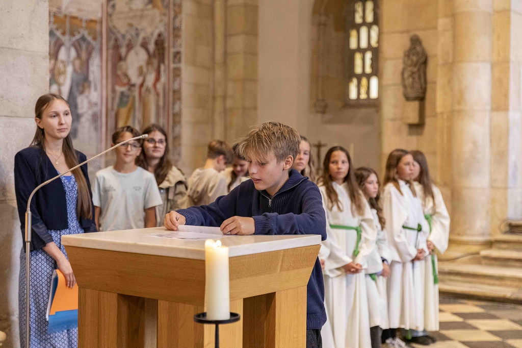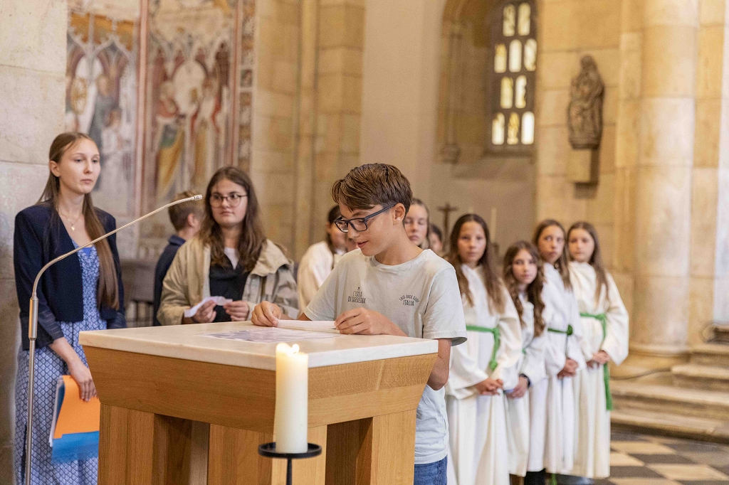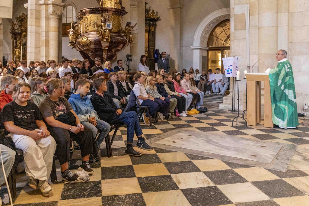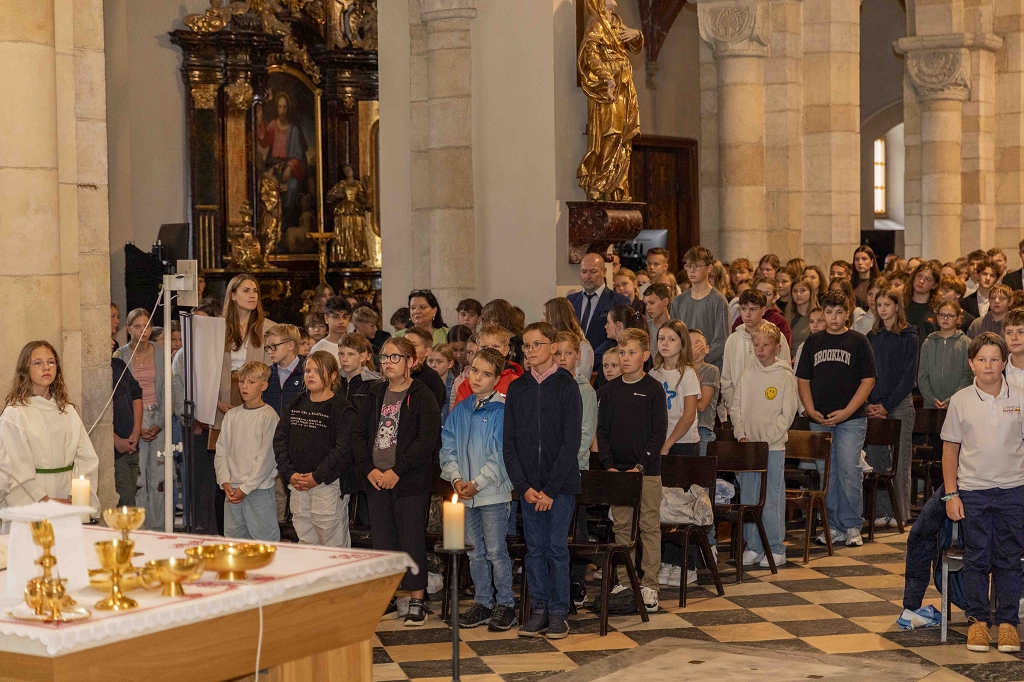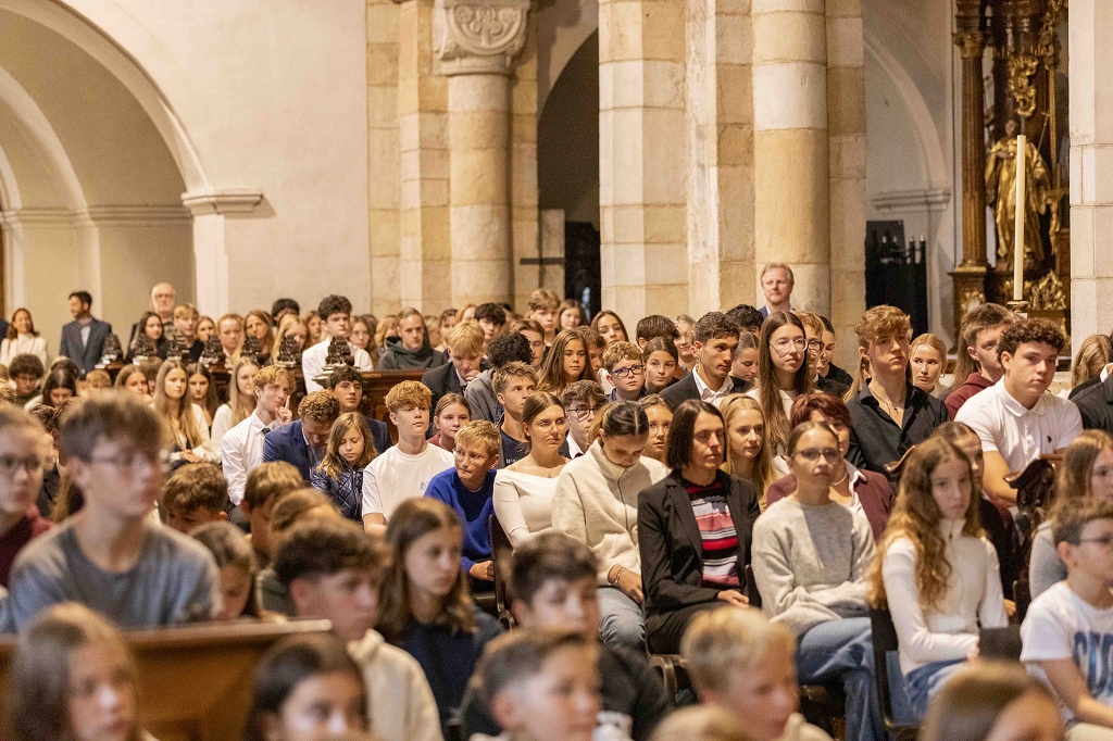 Mit einem Eröffnungsgottesdienst am 10. September begann das Stiftsgymnasium St. Paul das neue Schuljahr 2025/26. Traditionell wurde in der romanischen Stiftskirche gefeiert, um die enge Verbindung von Schule und Stift hervorzuheben. Unter der Leitung von Prof. Justus Eberl-Seger gestaltete der Schulchor den Gottesdienst musikalisch, während das schuleigene Bläserensemble unter der bewährten Führung von Prof. Thomas Zdravja für ein fulminantes Intro sorgte.