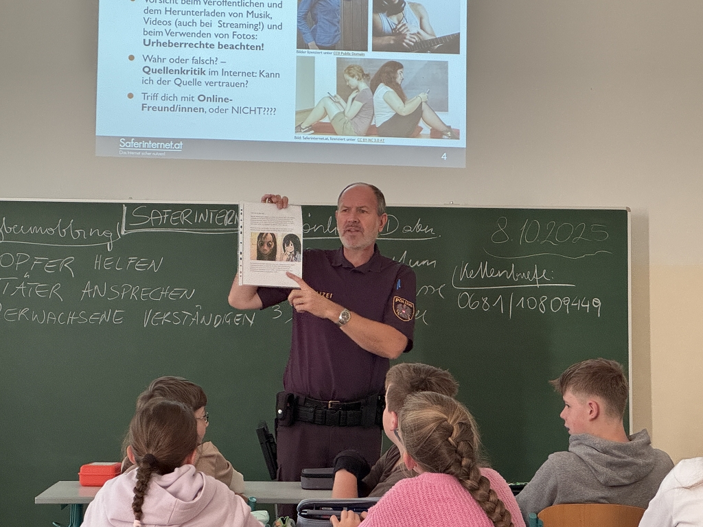 Die drei uniformierten Exekutivbeamt/innen vermittelten dabei viele interessante, realitätsnahe und altersgerechte Informationen und Fakten, die bei den Schülerinnen und Schülern auf sehr großes Interesse stießen. Besonders geschätzt wurde die Möglichkeit, Fragen zu stellen und sich aktiv mit den Themen auseinanderzusetzen.