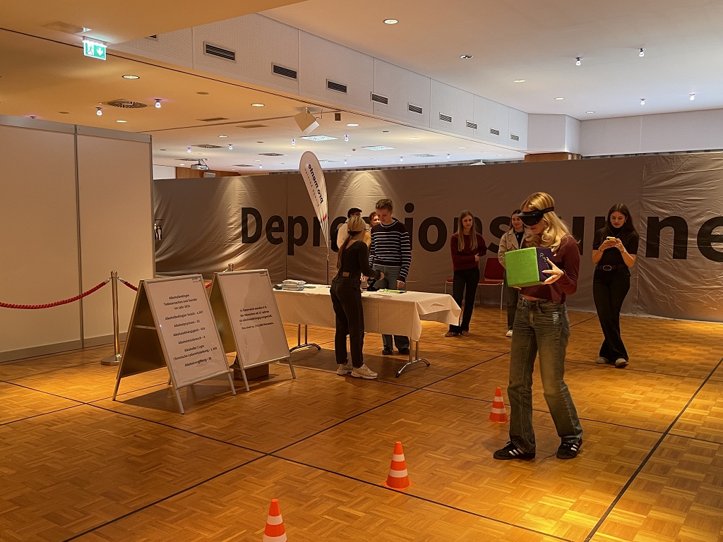 In drei interaktiven Stationen konnten die Schüler:innen erfahren, wie sich Depressionen, Schizophrenie und Alkoholismus anfühlen können.