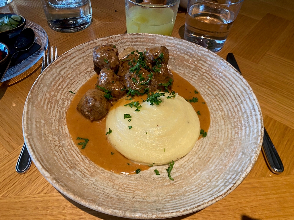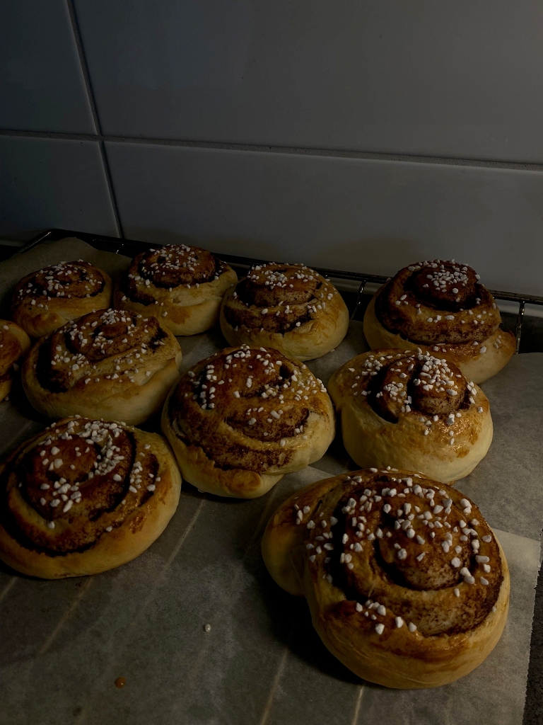 Typisch schwedisches Essen gab es oft. Ich probierte Köttbullar, Räkmacka, Fläsk med Löksås und vieles mehr. Natürlich durften Godis (schwedische Süßigkeiten) und mein absoluter Favorit Kanelbulle (Zimtschnecken) nicht fehlen. Wir haben Kanelbullar auch einmal gemeinsam gebacken – unglaublich lecker!