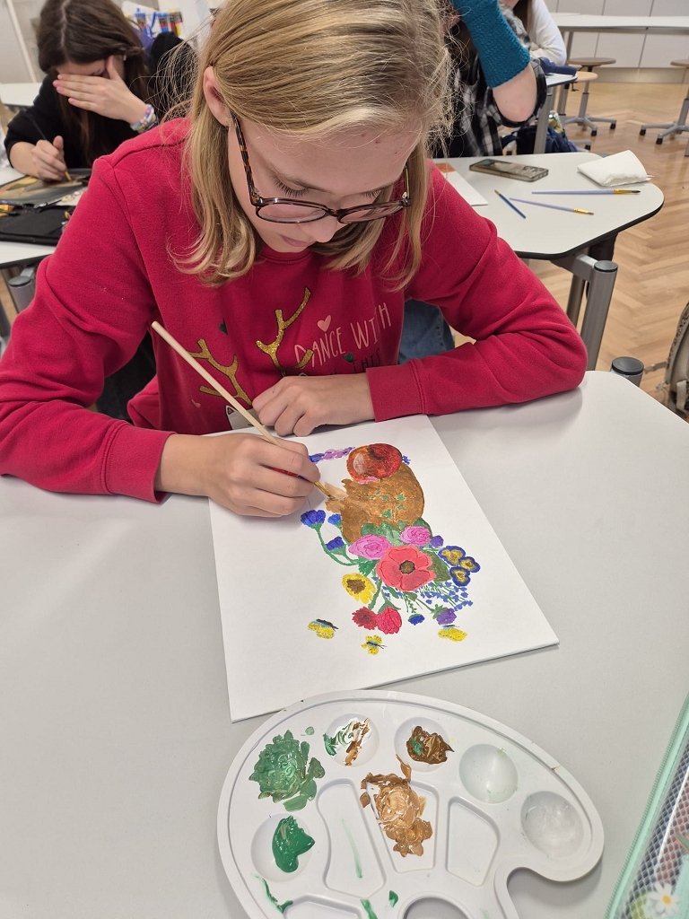 Im zusätzlichen Kunstunterricht für Kunstbegabte geben wir unseren Schülerinnen und Schülern viel Raum, ihre besonderen Talente zu entdecken und weiterzuentwickeln. In einer kleinen Projektgruppe arbeiten sie an Themen, die ihre Kreativität herausfordern und ihnen erlauben, ihren eigenen Stil zu finden.