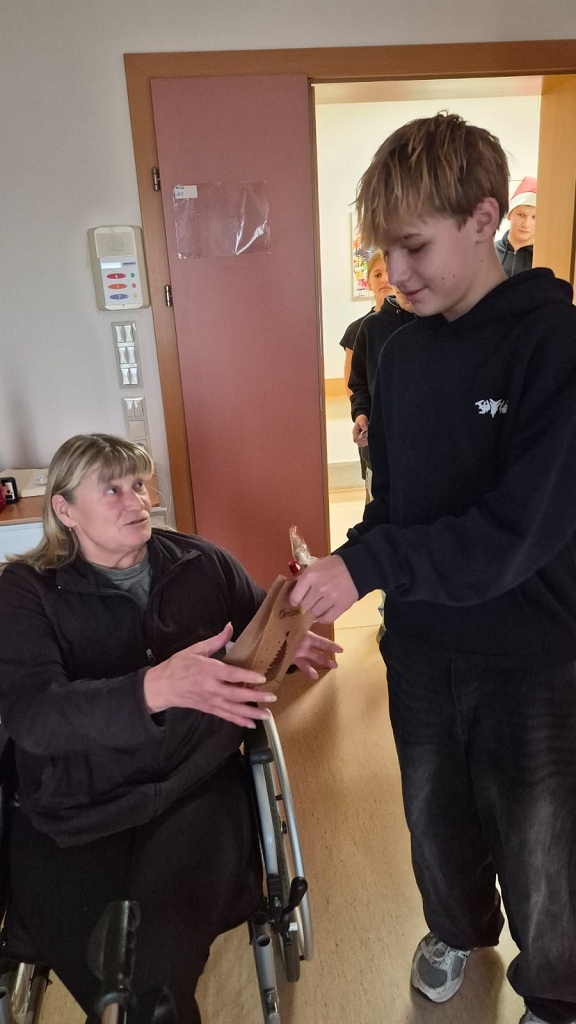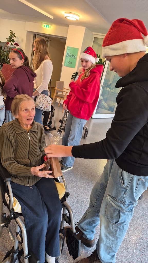 Mit Gedichten, musikalischen Beiträgen und vor allem mit viel Offenheit und Herzlichkeit gestalteten die Schülerinnen und Schüler einen stimmungsvollen Nachmittag, der viele berührende Momente schenkte. Ein besonderes Highlight waren die liebevoll vorbereiteten „Überraschungs-Sackerl mit Weihnachtszauber“, die jedem einzelnen Bewohner überreicht wurden und viel Wärme und Licht in diese besondere Zeit brachten.