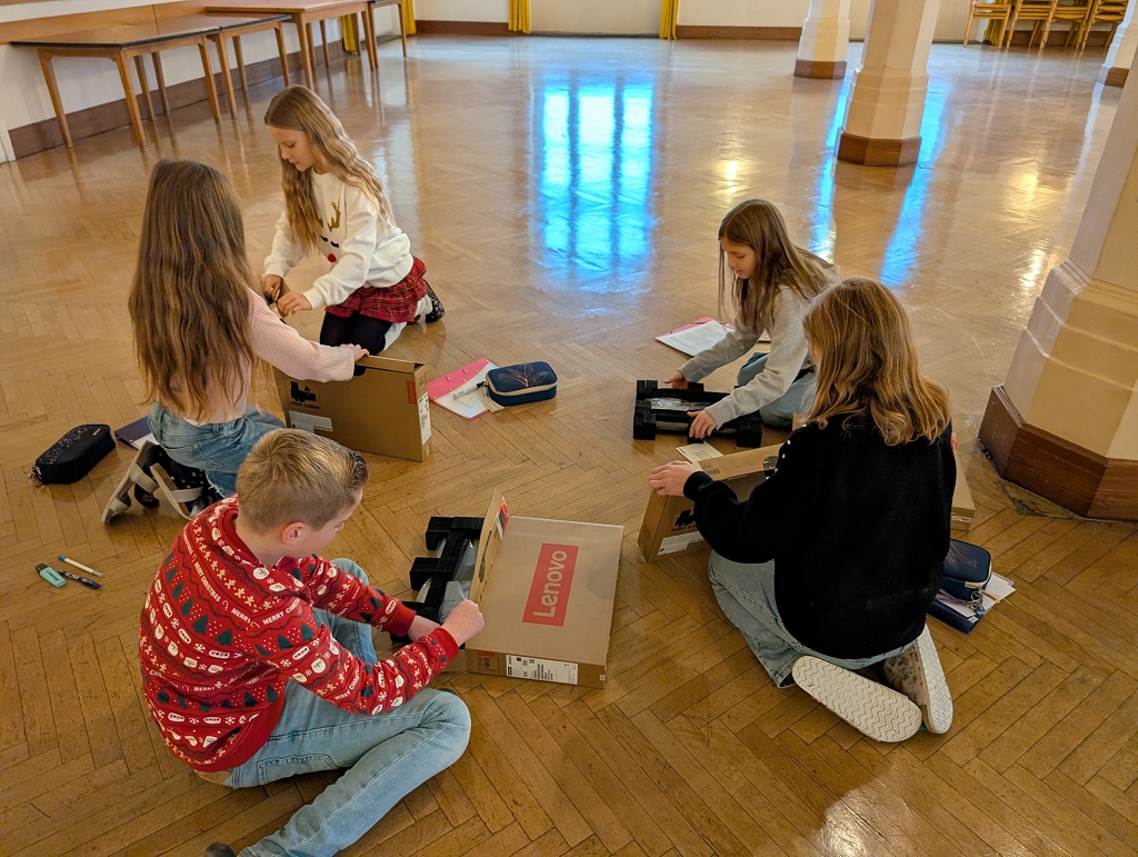 In diesem Schuljahr ging es sich gerade noch rechtzeitig vor den Weihnachtsferien aus. Die Professoren Bürger, König und Wernig konnten den Schüler:innen dabei gleich einen praktischen Einblick in die Arbeitswelt von IT-Administrator:innen geben. Bei der Ausgabe wurden die Seriennummern kontrolliert, die Übernahme protokolliert und anschließend das Paket von den Schüler:innen auf Vollständigkeit überprüft.