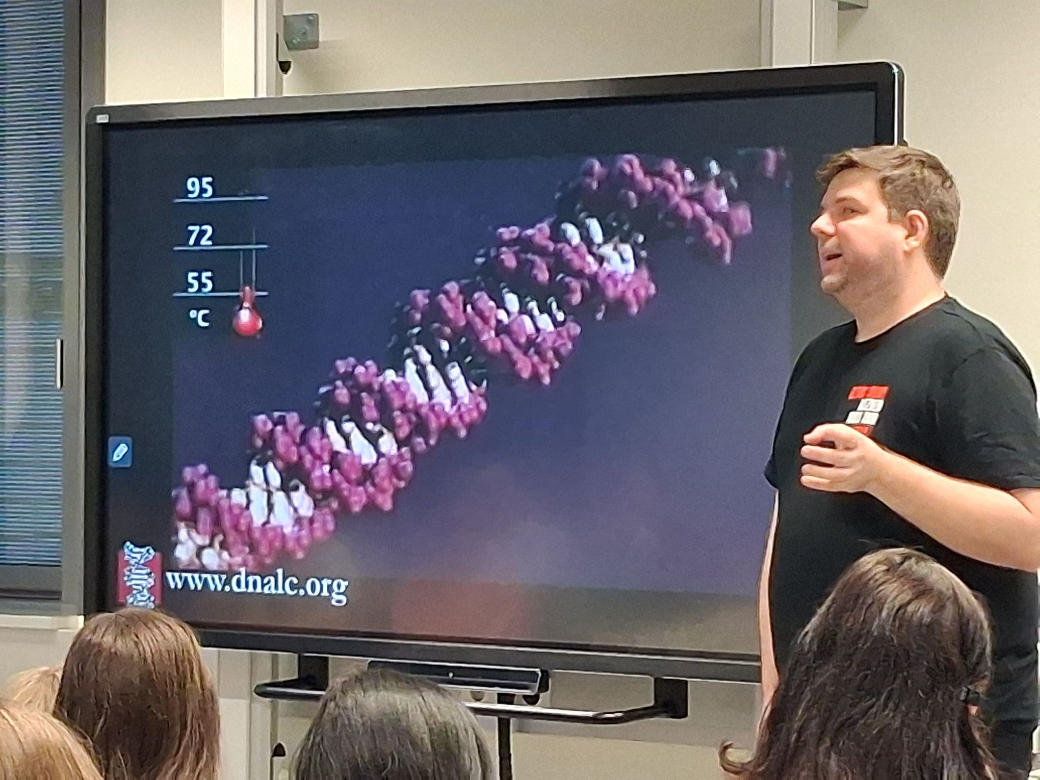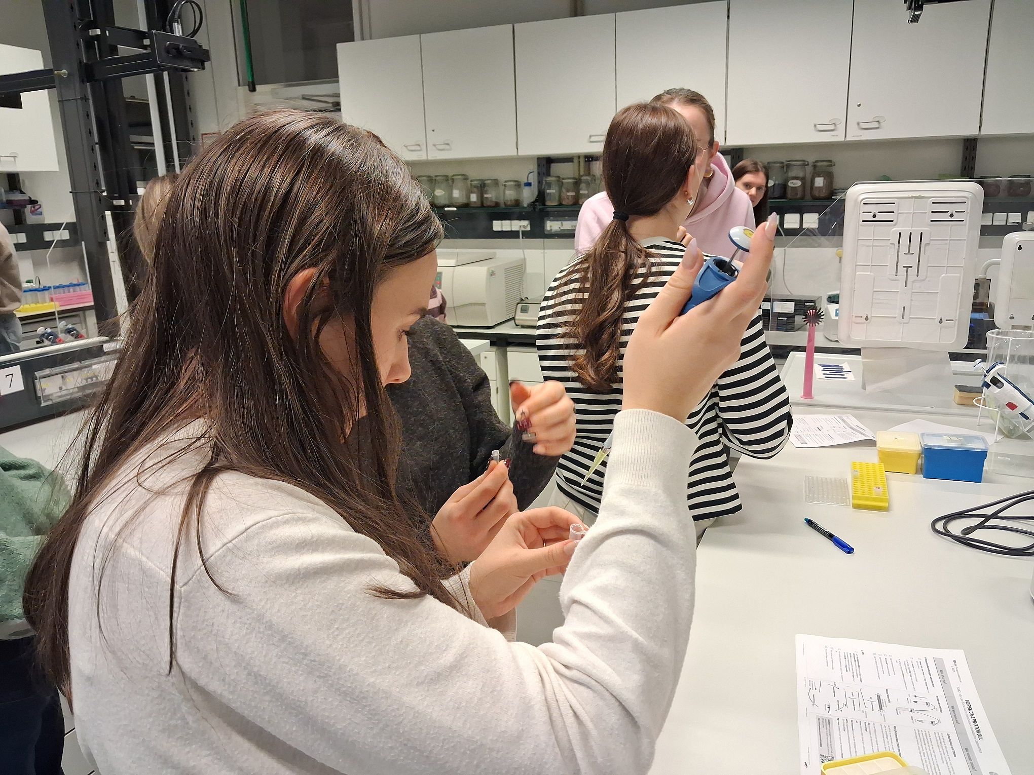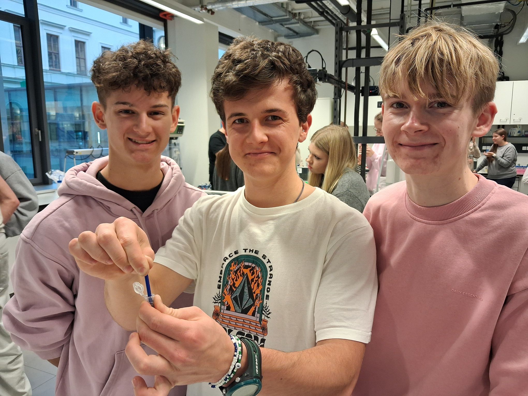 Unser Hauptziel war das Labor der Universität Graz. Zu Beginn nahmen wir an einem Vortrag über genetische Veränderungen teil. Dabei wurde erklärt, was DNA ist und, wie genetische Veränderungen entstehen können. Als anschauliches Beispiel diente eine Tomate, anhand der gezeigt wurde, wie bestimmte Eigenschaften gezielt verändert werden können und, wie man genetisch veränderte Organismen nachweist.