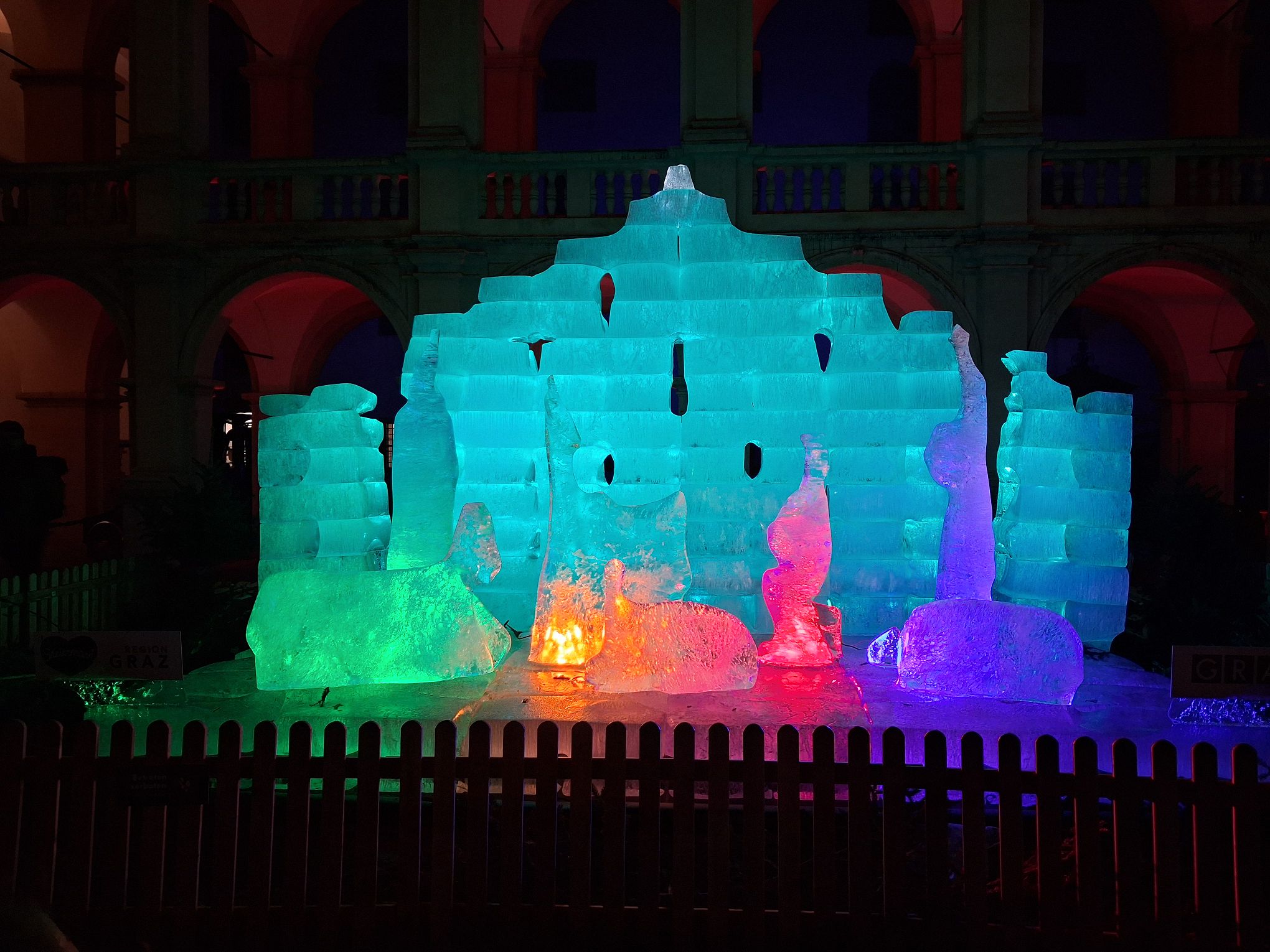 Nach dem Laborbesuch gingen wir zur Krippe aus Eis im Landhaushof. Anschließend hatten wir etwa zwei Stunden Freizeit, um den Grazer Weihnachtsmarkt zu besuchen und etwas zu essen. Am Abend traten wir die Rückreise mit dem Zug durch den Koralmtunnel an. Insgesamt war die Exkursion sehr lehrreich und eine gelungene Ergänzung zum Biologieunterricht.