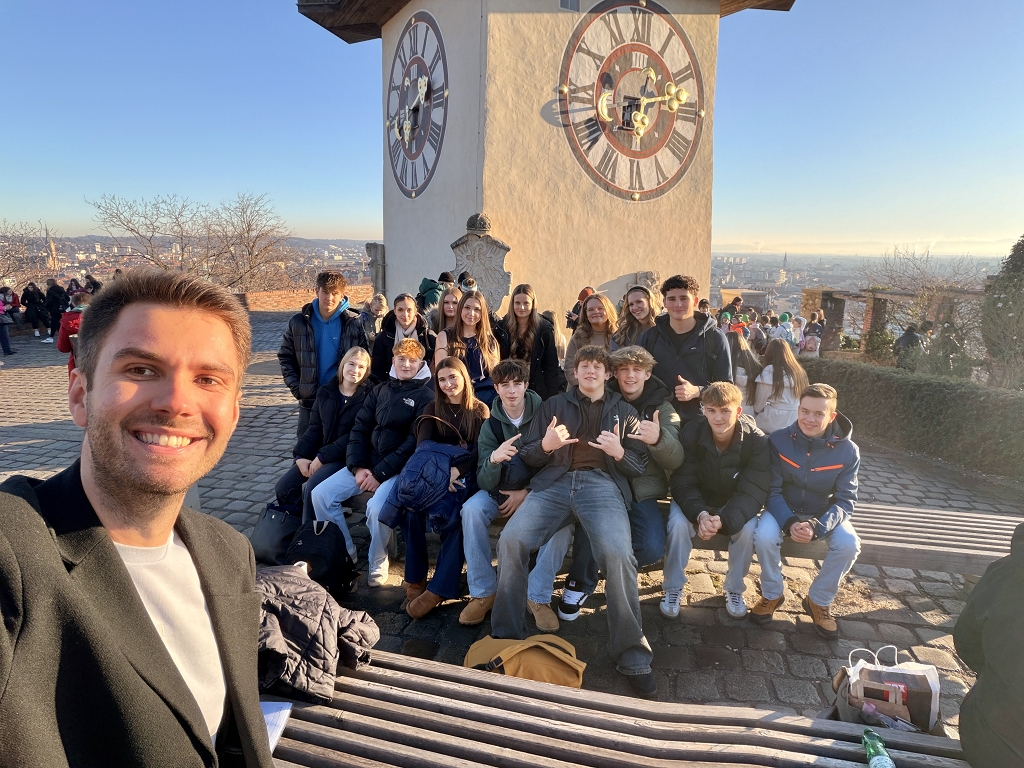Wir fuhren um 13:30 Uhr mit der neu eröffneten Koralmbahn zum Grazer Hauptbahnhof. Danach ging es mit der Straßenbahn weiter zum Hauptplatz, der „Piazza“ im Zentrum von Graz. Von dort aus gingen wir auf den Grazer Uhrturm. Einige Schülerinnen und Schüler probierten sogar die Schlossbergrutsche aus.