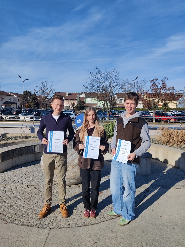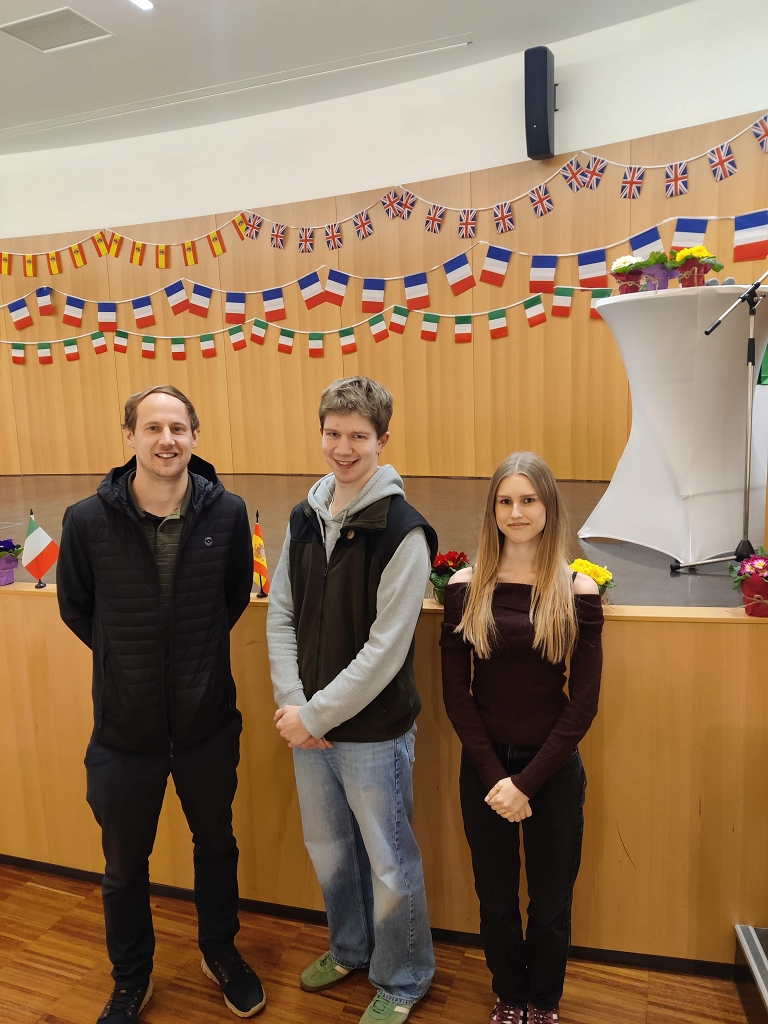 Das Stiftsgymnasium St. Paul wurde von Marie-Theres Leopold und Elias Rieger (Englisch) sowie Tobias Kaufmann (Französisch) vertreten, die in von Muttersprachlern geleiteten Diskussionen über Soziale Medien (Englisch) und Influencer (Französisch) ihre Sprachkenntnisse eindrucksvoll unter Beweis stellen konnten.