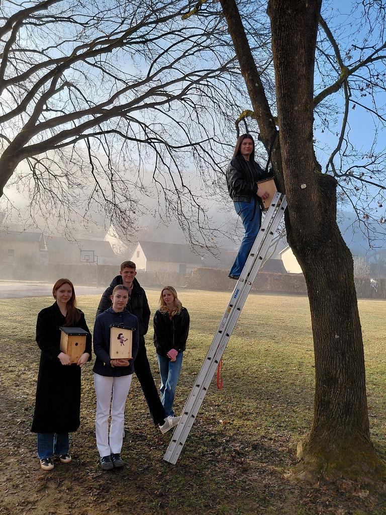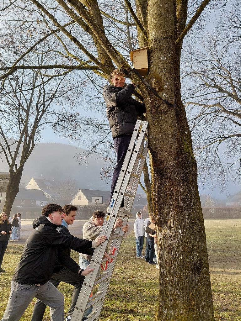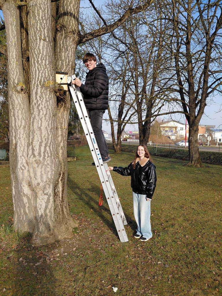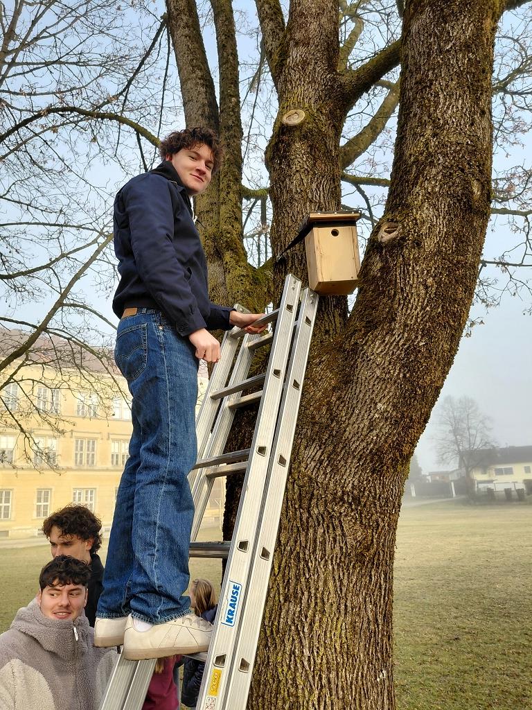 Mit den ersten frühlingshaften Tagen ging es nun an die Anbringung der Nistkästen am Schulgelände. Die 8b-Klasse und die TEDE-Gruppe der 2cd-Klassen mit Mag. Christian Taudes zeigte sich dafür verantwortlich. Bleibt nun abzuwarten, wie Amsel, Drossel, Fink und Star die Nistkästen annehmen.