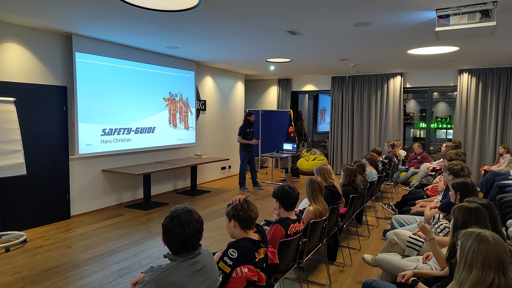 Wichtige Inhalte wie Erste Hilfe, Lawinenkunde und die Pistenregeln wurden von einem AUVA-Safety-Guide in einem spannenden Abendvortrag sowie durch praktische Übungen auf der Piste vermittelt.