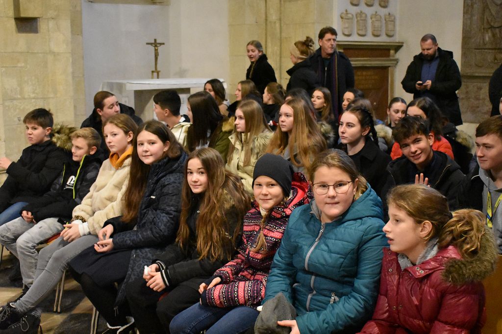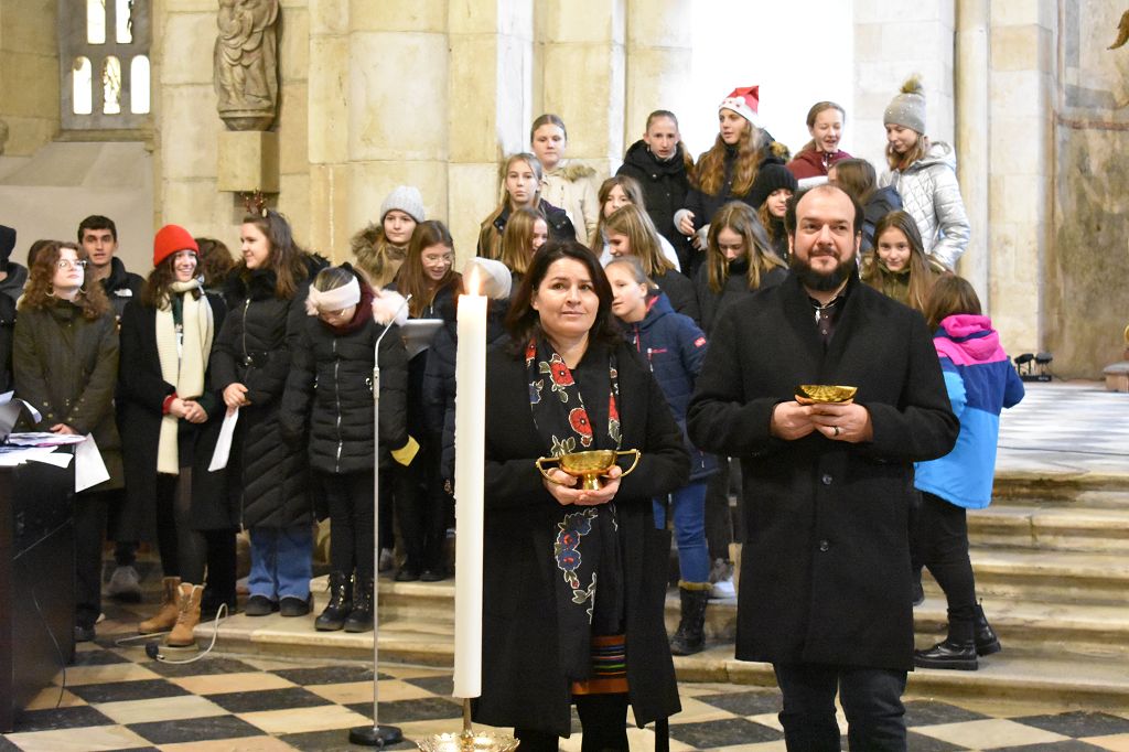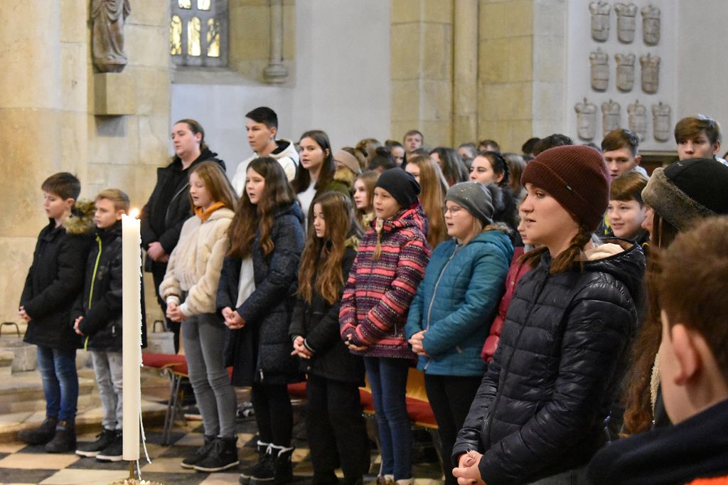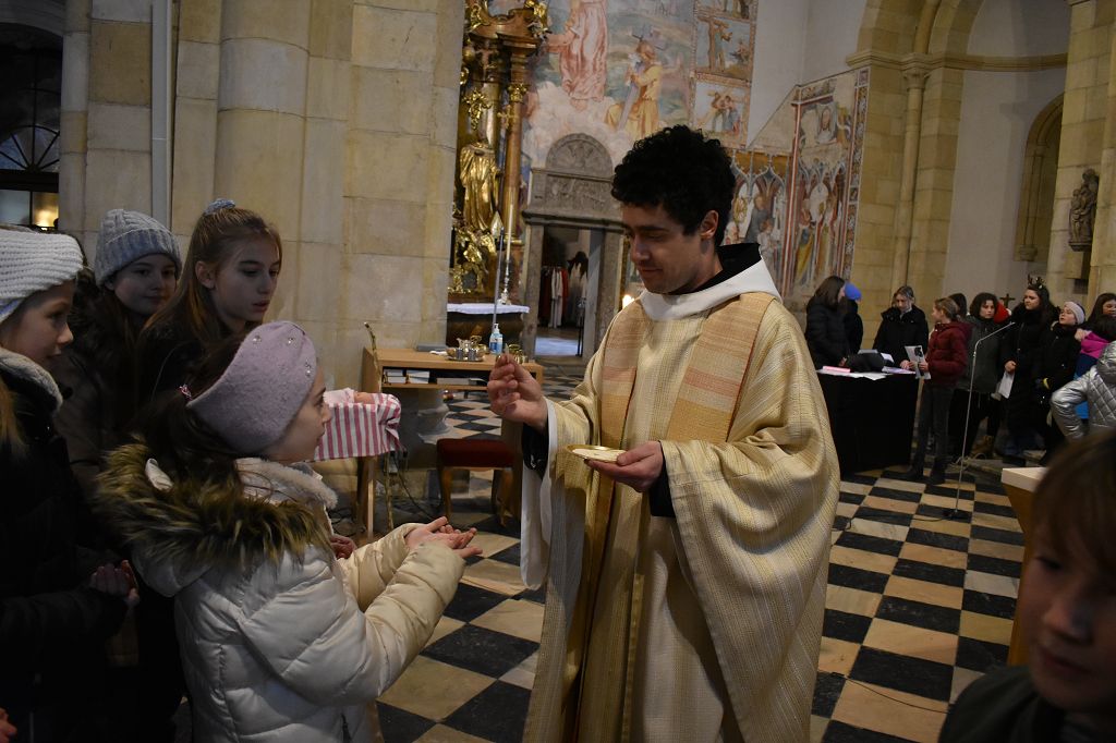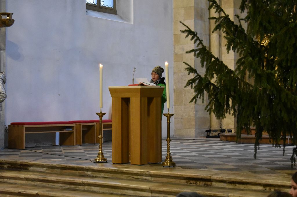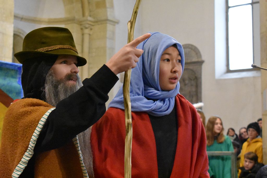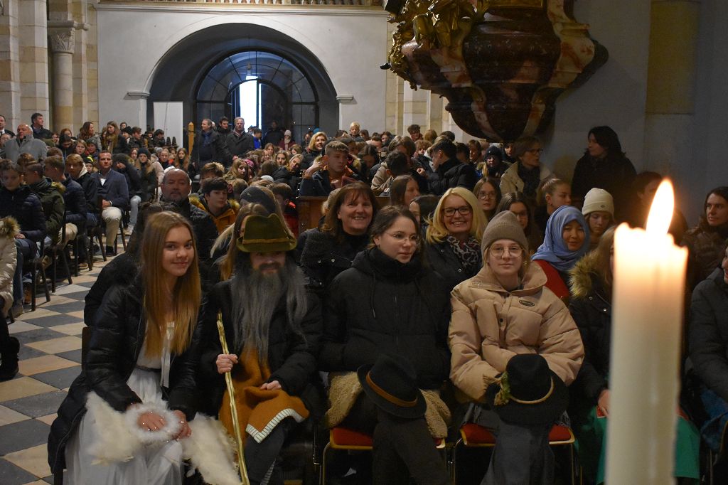 Der Schulchor unter der Leitung von Professorin Almut Wakonig-Dalton begleitete uns durch die Feier von Wort und Eucharistie und Professorin Victoria Meklin hatte, dem Evangelium folgend, mit den Schülerinnen und Schülern der Unterstufe ein Krippenspiel einstudiert, welches das Wort des Evangeliums mit großer Freude zum Leben erweckte.