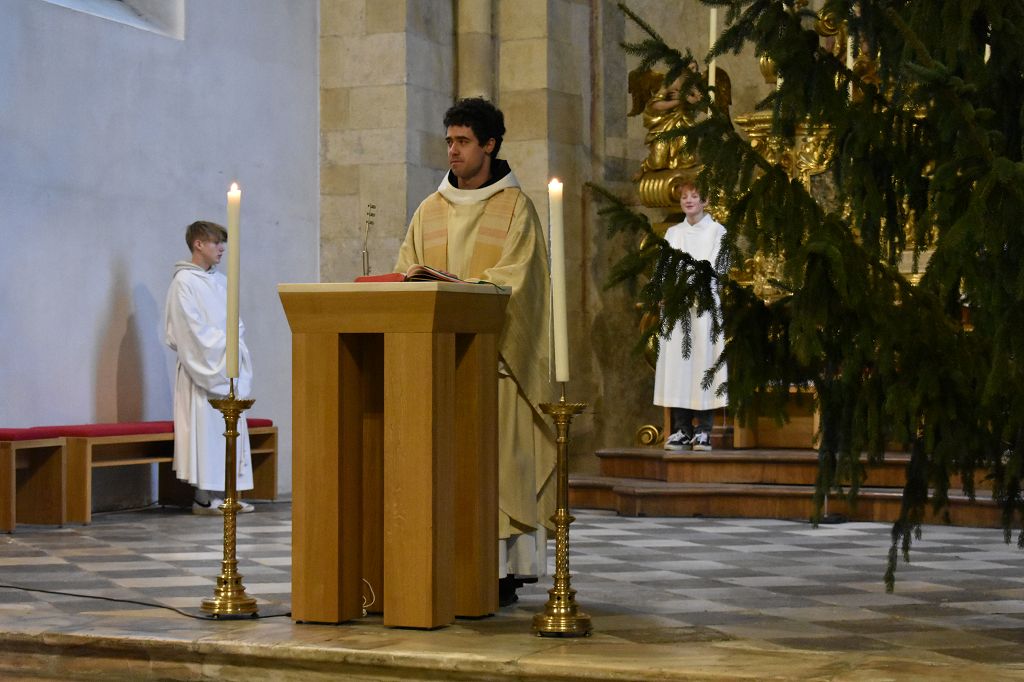 Am Ende dieses Jahres bleibt nur noch euch, den Schülerinnen und Schülern dieser Schule, ihnen, den Eltern und Erziehungsberechtigten, dem Kollegium, den Patres und Fratres und unserem gesamten Personal unserer Schule frohe und besinnliche Weihnachten und einen guten Start in das kommende Jahr zu wünschen – im steten Bewusstsein, dass das Fleisch gewordene Wort – Jesus der Christus – uns auch dieser Tage begleitet und leitet.