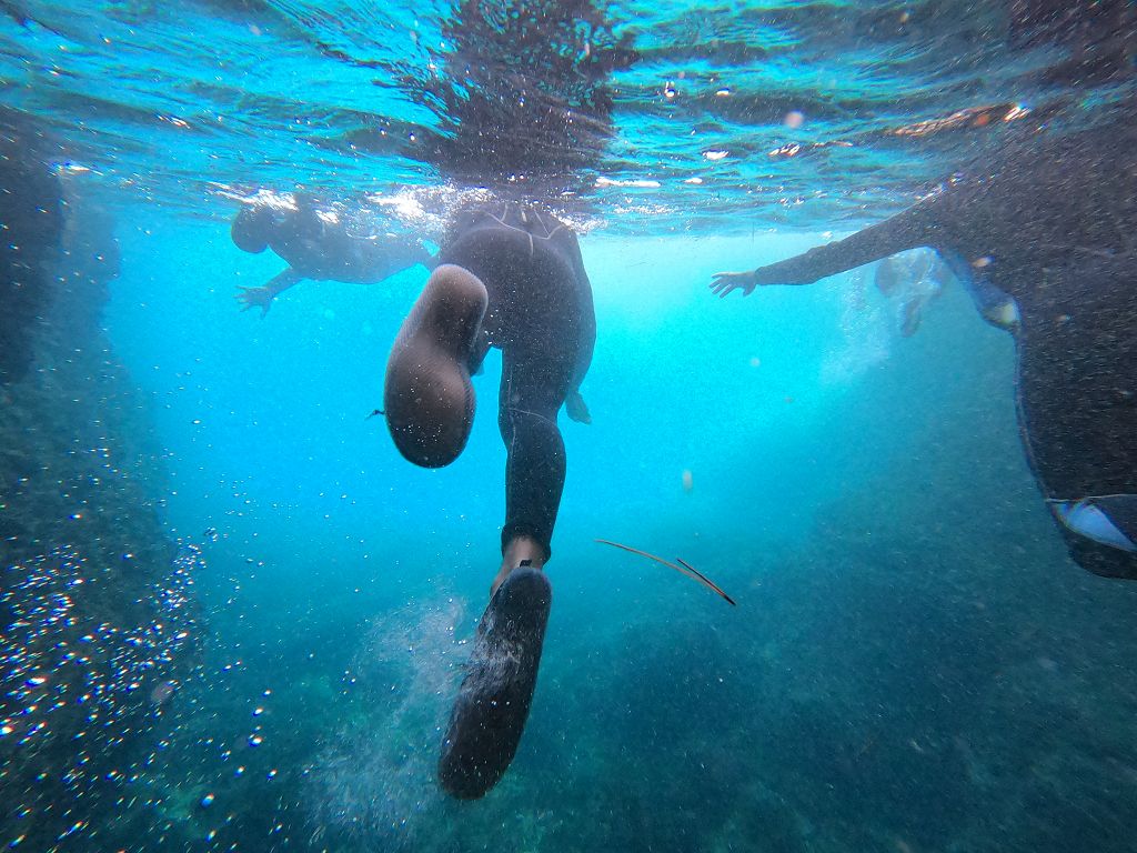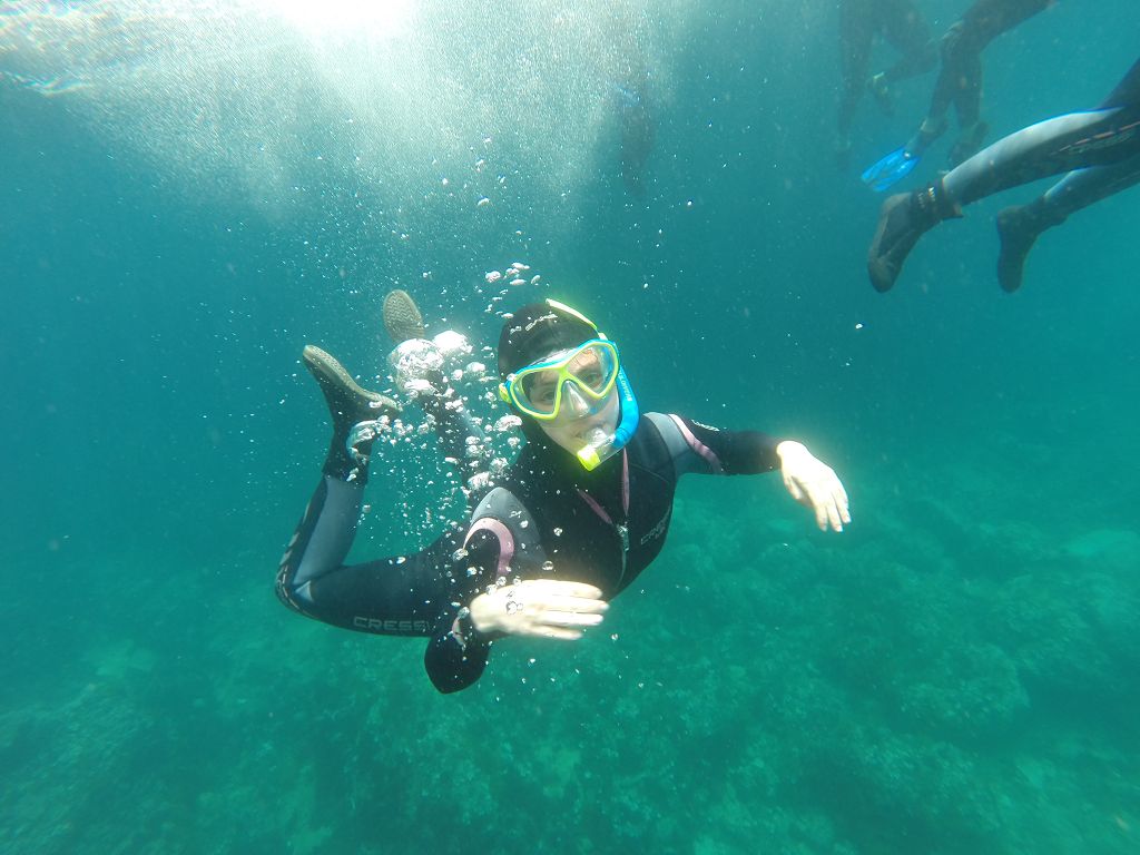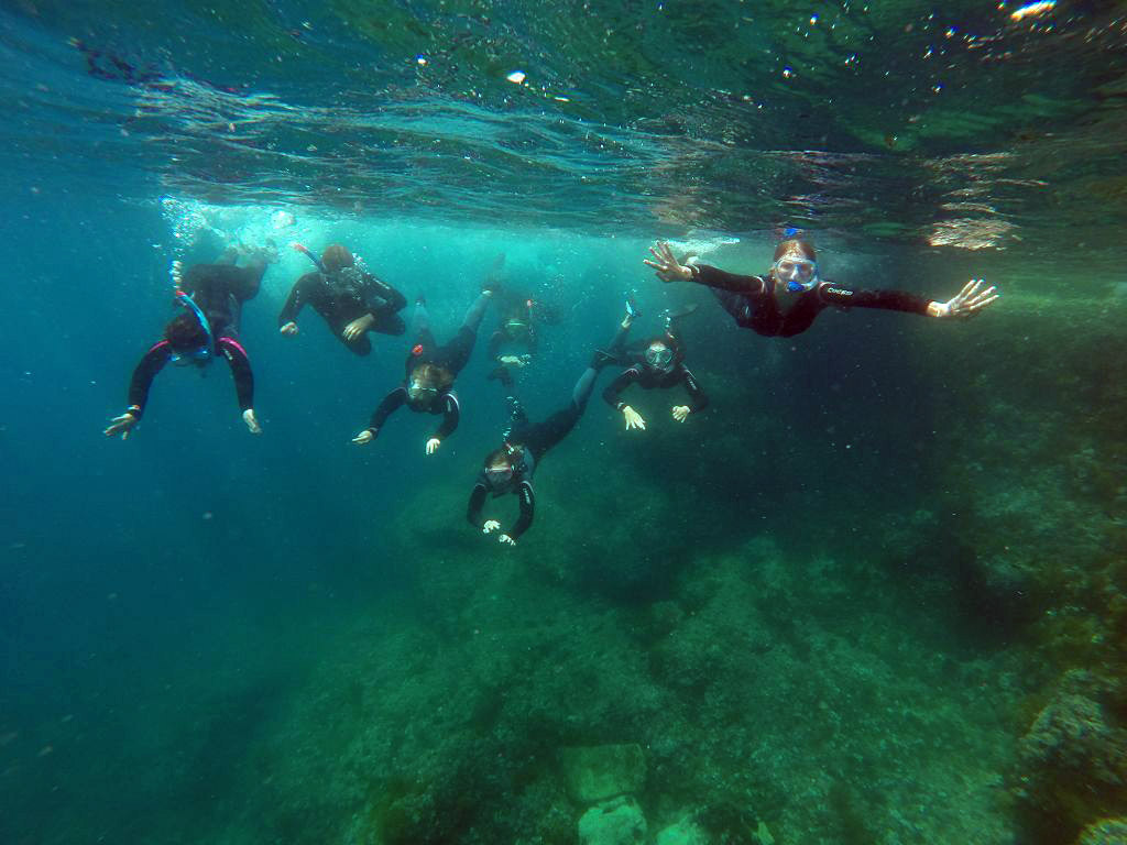 Gleich nach dem „Einschnorcheln“ am ersten Tag fühlten sich alle wie Schnorchel-Profis. Mit viel neuem Wissen und Ausrüstung ging es am zweiten Tag mit dem Boot zu einer Insel in der Nähe von der Herberge. Dort wurden alle von dem wunderschönen Anblick unter und über dem Wasser verzaubert. Obwohl das Wetter am letzten Tag nicht so ganz mitgespielt hatte, waren trotzdem alle motiviert, das Leben in der Grotte kennenzulernen, dabei half natürlich auch die Wärme des Neoprenanzugs. Die Meeresbiologen erlaubten den Schützlingen sogar, einen Stein aus der Grotte mit nach Hause zu nehmen. Am Nachmittag wurde den Schülern aufgetragen, verschiedene Meeresbewohner zu fangen und gemeinsam zu analysieren. Von interessanten Symbiosen zwischen Einsiedlerkrebsen und Seeanemonen bis hin zur Lebenserwartung der Meerestiere, lernten die SchülerInnen viel Erwähnenswertes über die Lebewesen. Natürlich wurden die Meeresbewohner danach wieder vorsichtig freigelassen, wobei die Schüler noch etwas ganz Wichtiges lernten: „Kommt ein Tier beim Untersuchen zu Schaden, so muss es in seinem Ist-Zustand gegessen werden.“