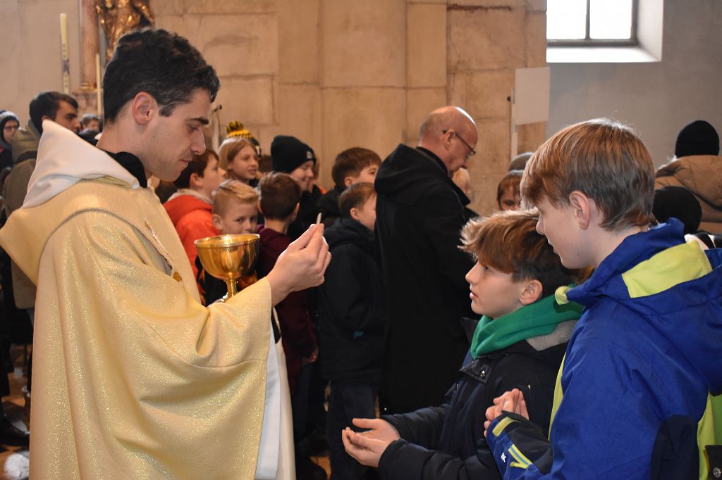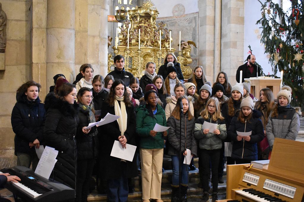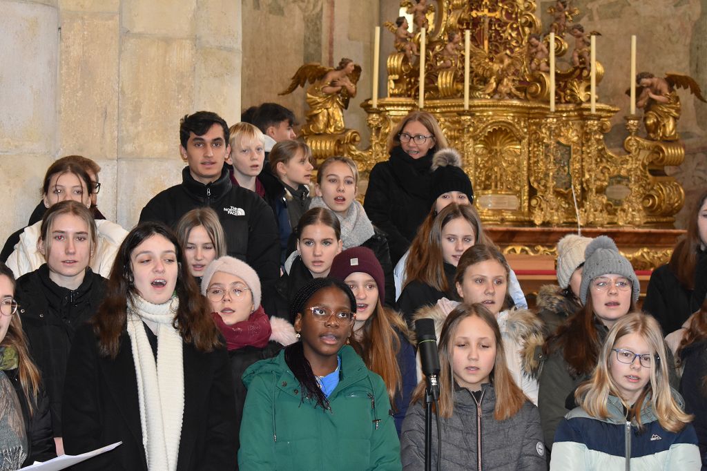 Dieses Jahr durften wir die Messe mit Pater Romanus Kribernegg feiern und dieser fand eindrucksvolle Worte über das Wesen des Glaubens, während die Schüler:innen die Dienste als Lektoren übernahmen. Nachdem jedoch eine Feier ohne Musik nur ein halbes Fest wäre, wurde die Messe erneut vom Bläserensemble unter der Leitung von Professor Thomas Zdravja und dem Schulchor unter der Leitung von Professorin Almut Wakonig-Dalton mitgestaltet.