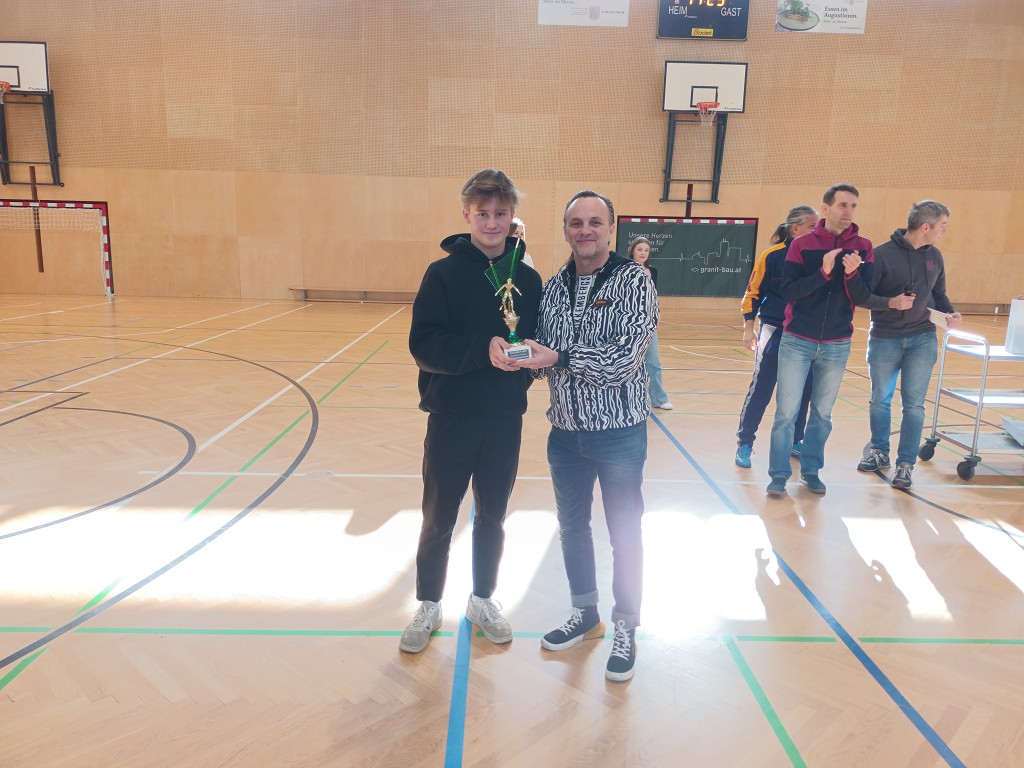 Leider wurde Maximilian Gerstl beim letzten Spiel verletzt und fiel damit für die Finalspiele der Oberstufe aus, ebenso musste Jakob Wuggenig am Sonntag pausieren. Und so hieß es umdisponieren: Matthias de Monte wurde für die Spiele der Mittelstufe und Oberstufe eingesetzt und Leon Samitsch spielte in der Mittelstufe 2.