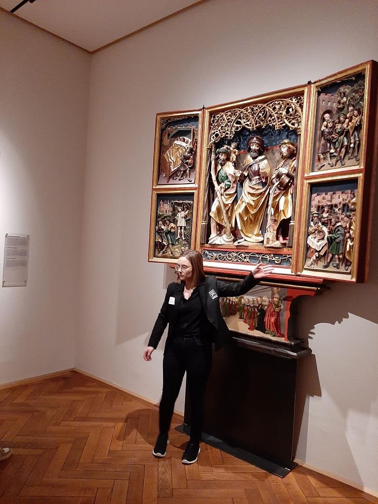 Die Kunstinstallationen beeindruckten mich und verliehen dem Museum einen modernen Touch. Besonders interessant fand ich auch die Räume, in denen am Boden Installationen angebracht waren. Frau Pinter hat die Führung sehr spannend gestaltet. Ihre Art die Ausstellung zu präsentieren, war meiner Meinung nach sehr gelungen, vor allem durch ihren Humor und ihre gelegentlichen Witze empfand ich die Führung nicht als trocken oder langweilig.